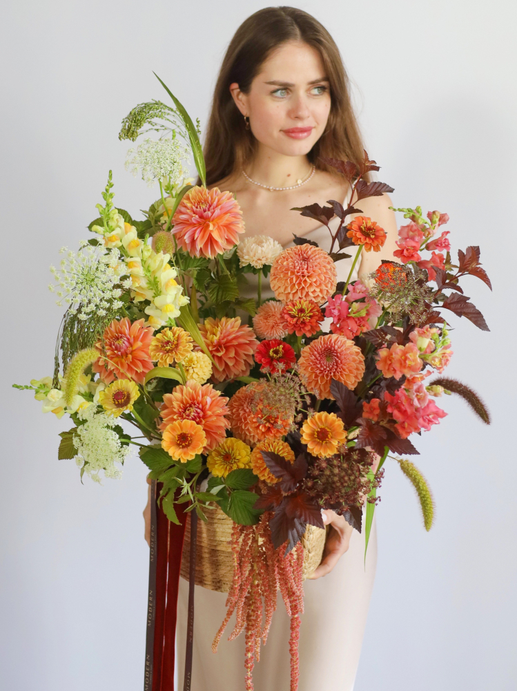 —БОЛЬШАЯ КОРЗИНА С ГЕОРГИНАМИ И ДРУГИМИ ЛЕТНИМИ ЦВЕТАМИ
