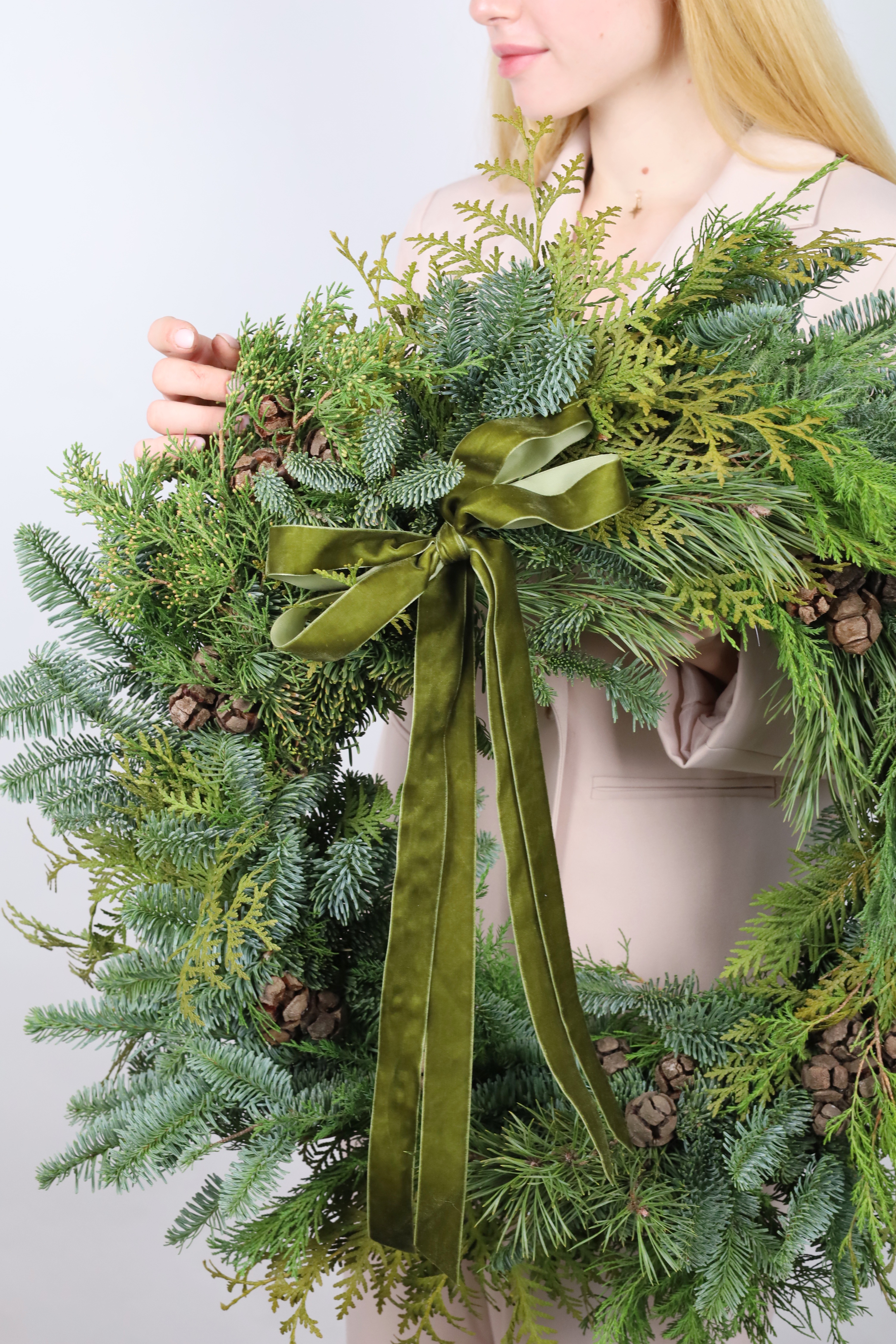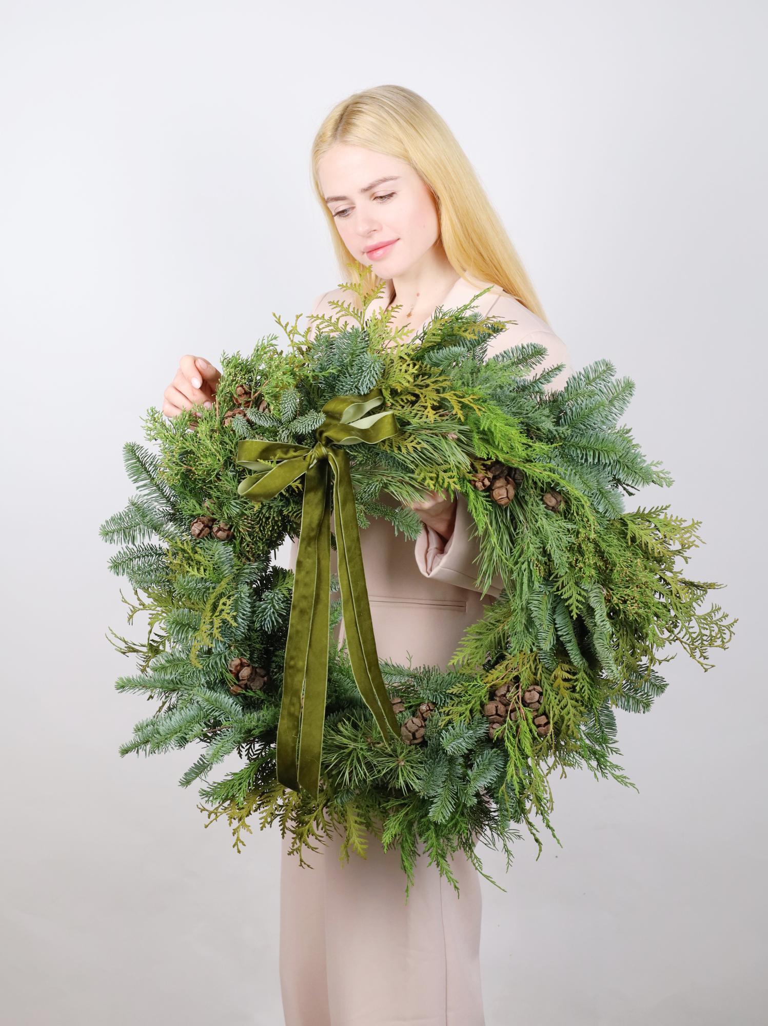 *Все наши работы создаются вручную из натуральной хвои, ветки которой могут отличаться друг от друга по размеру и объему. Композиция или новогодний венок могут незначительно отличаться от фото, но при этом они будут выполнены в такой же стилистике и цветовой гамме.