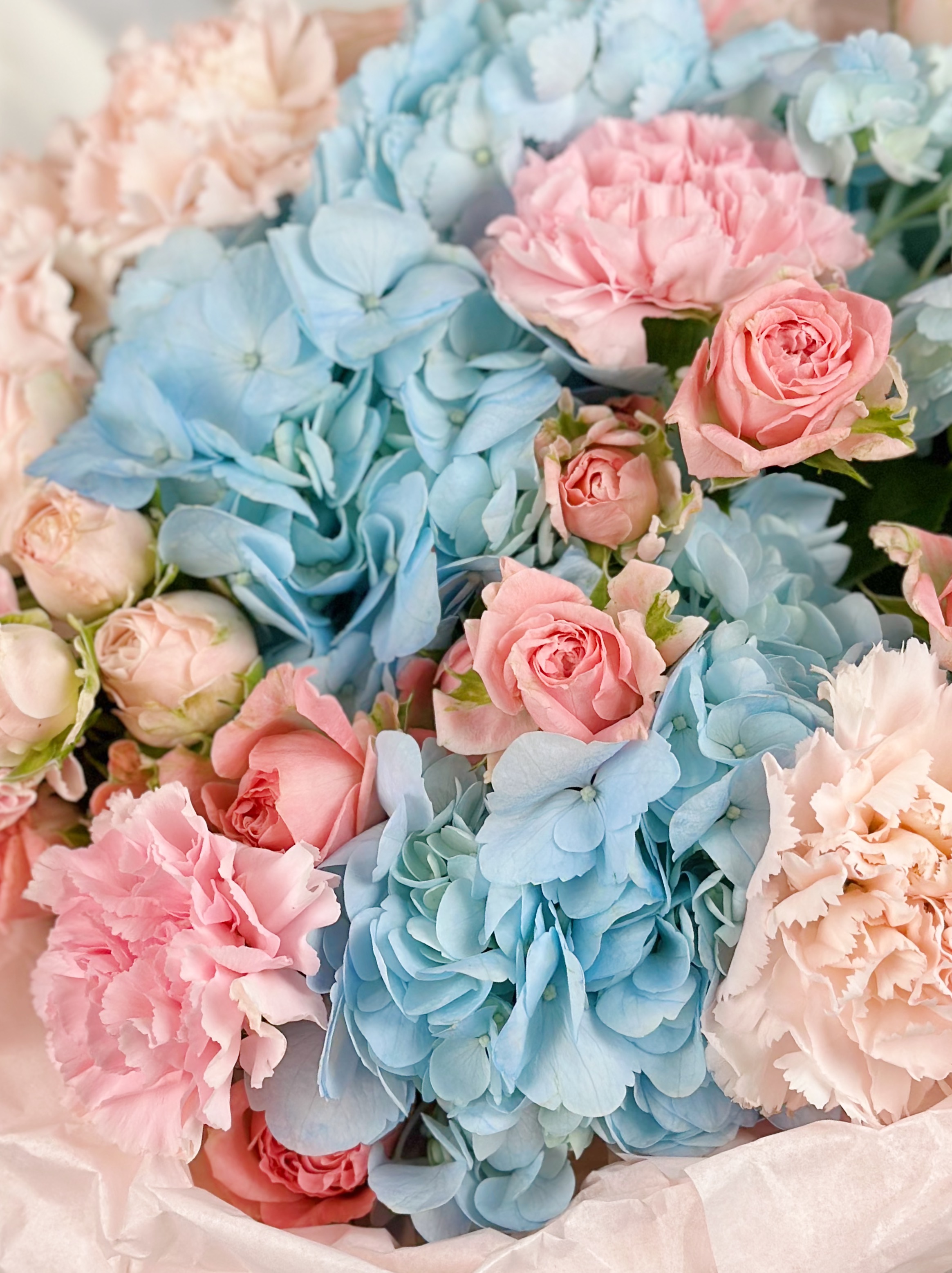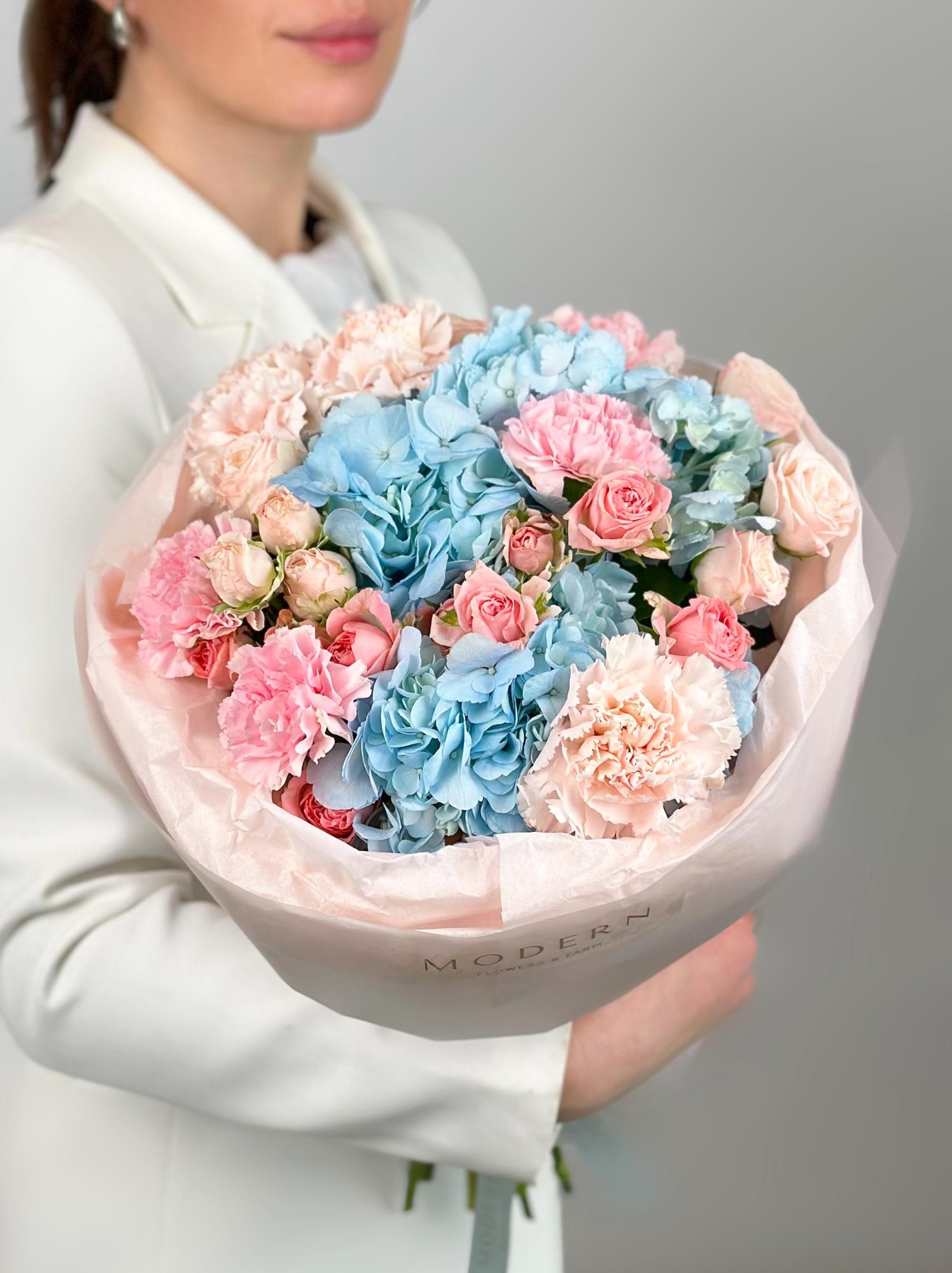 —БУКЕТ ГОРТЕНЗИЯ, ПИОНОВИДНАЯ КУСТОВАЯ РОЗА И ДИАНТУС