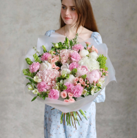 В теплое время года предлагаем в каталоге цветы, выращенные на нашей ферме — это сезонные сорта, которые срезаются под заказ: гортензия, маттиола, астра, пион и т.д.