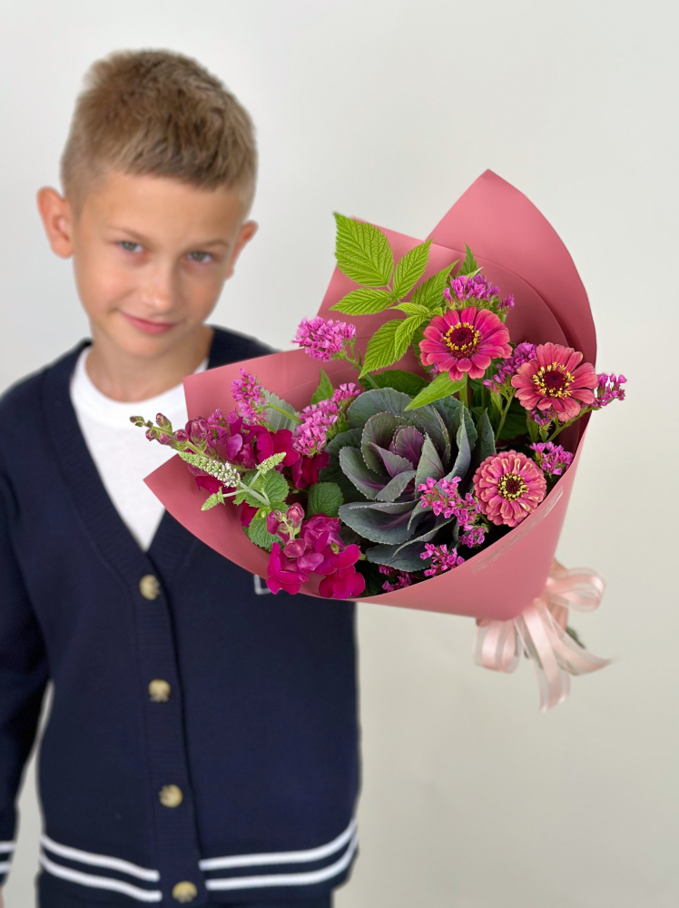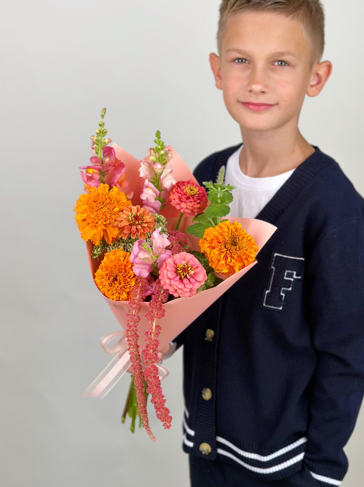 Предлагаем охапки в крафте с цветами, выращенными на нашей ферме — дельфиниум, львиный зев, ромашки, маттиола, астра и другие.