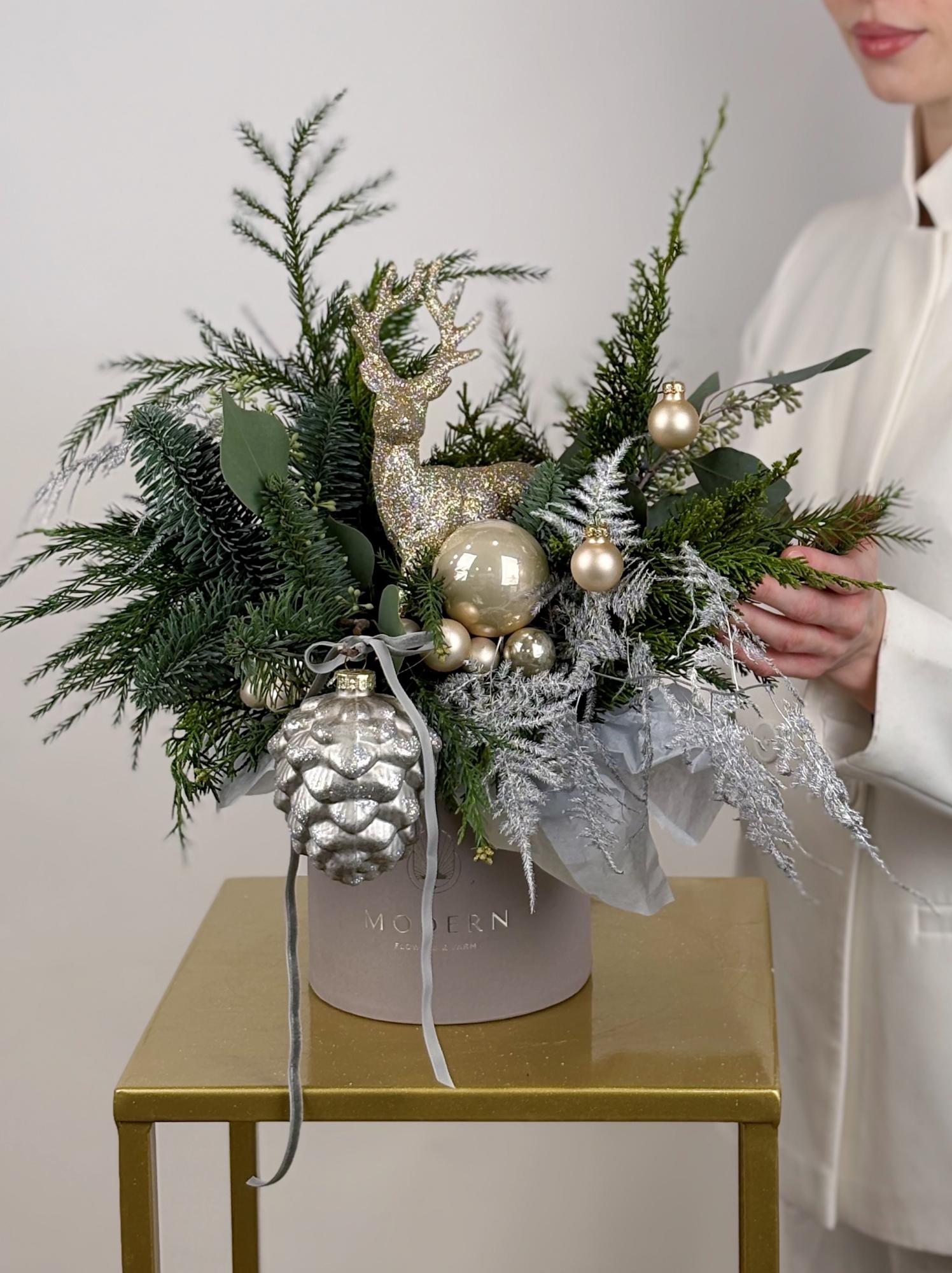 —КОМПОЗИЦИЯ ИЗ НАТУРАЛЬНОЙ ХВОИ И НОВОГОДНИМ ДЕКОРОМ