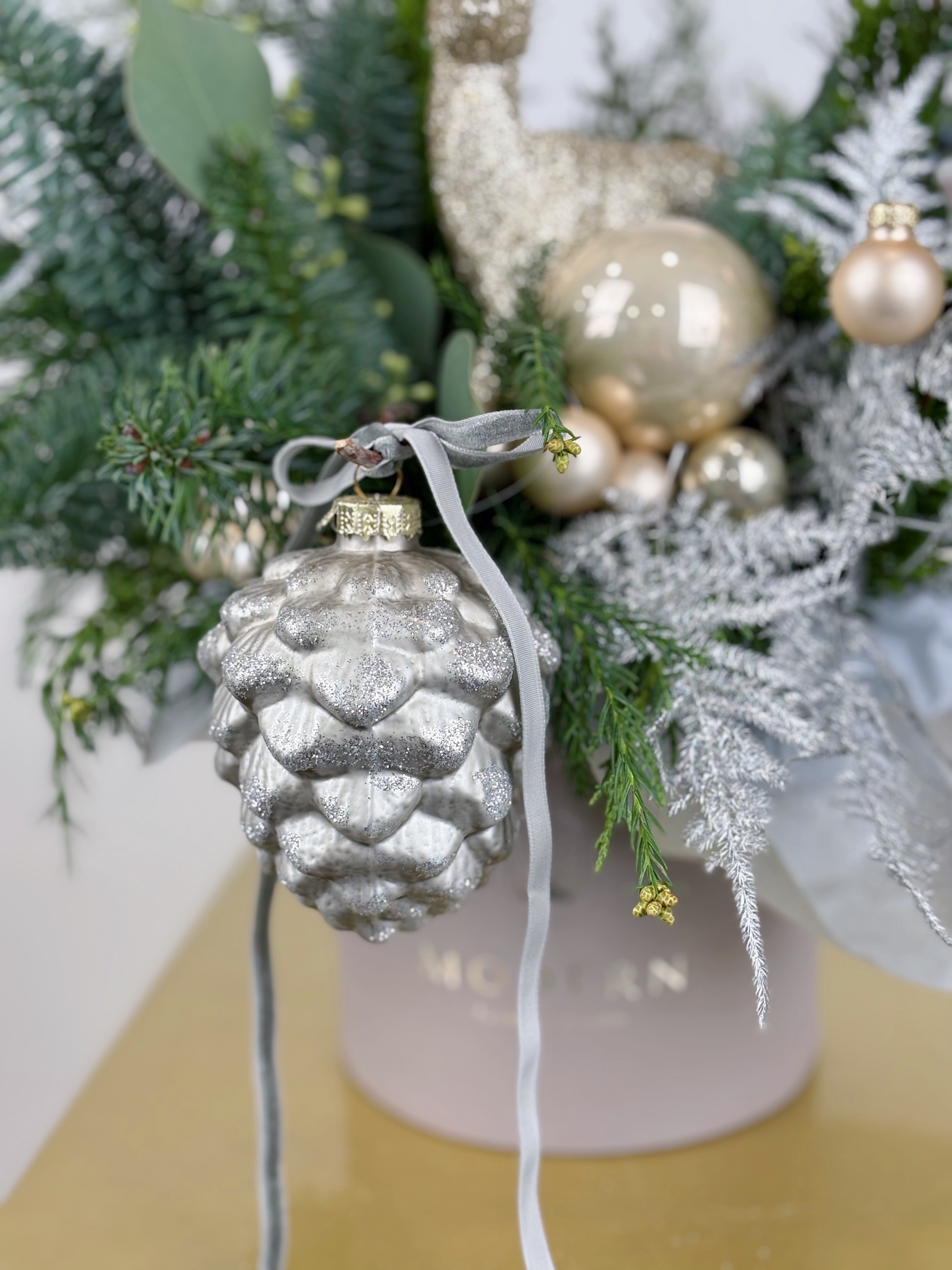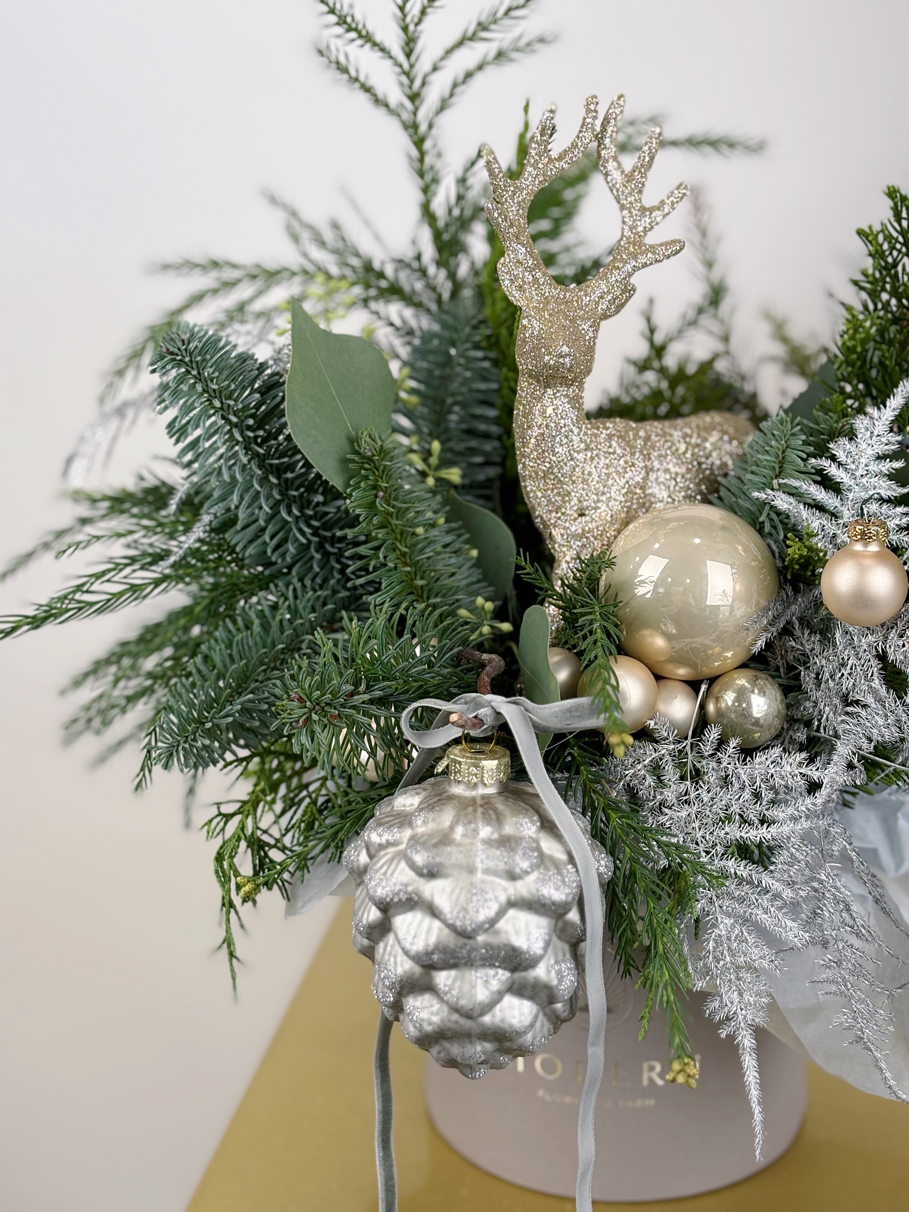 КОМПОЗИЦИЯ ИЗ НАТУРАЛЬНОЙ ХВОИ И НОВОГОДНИМ ДЕКОРОМ