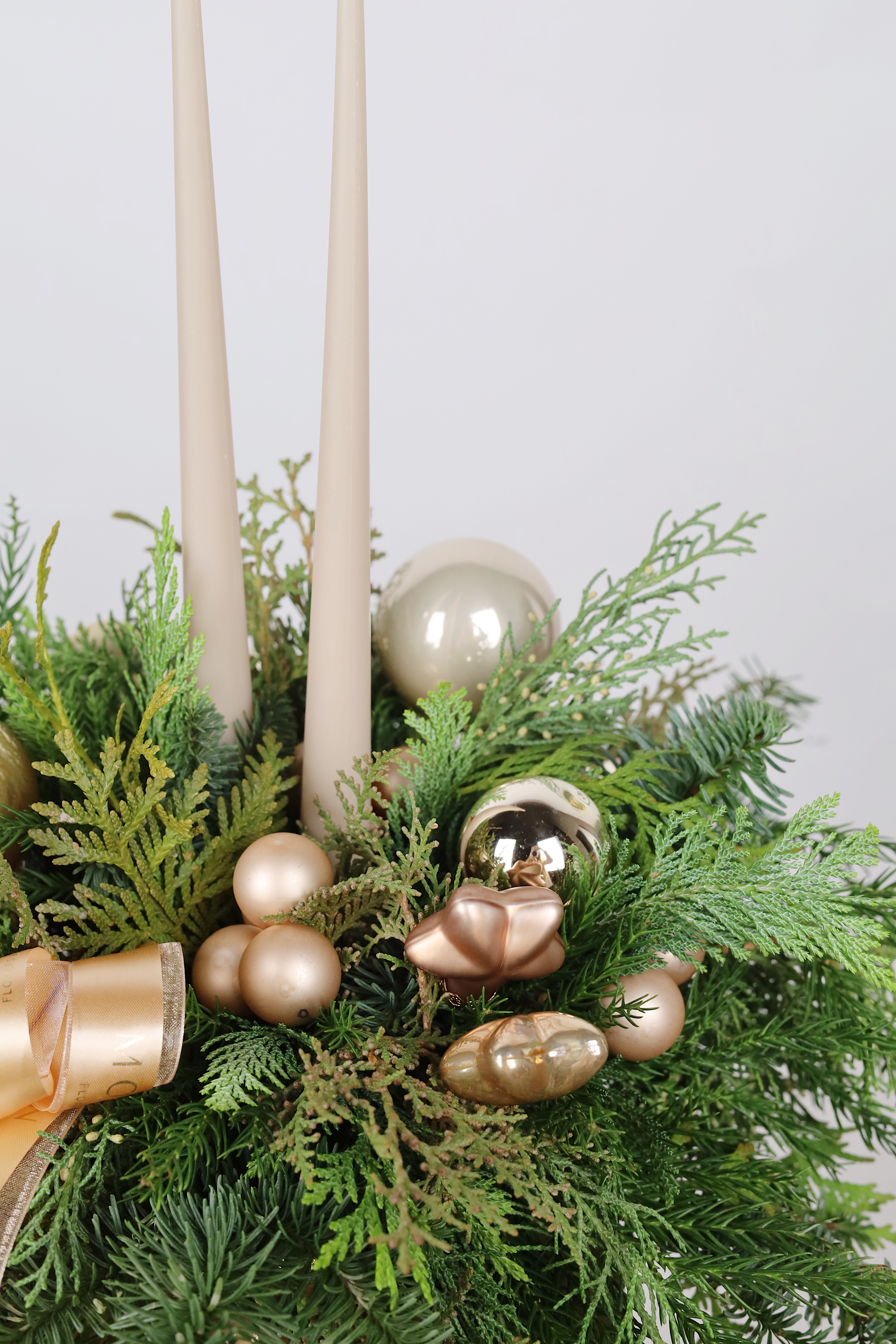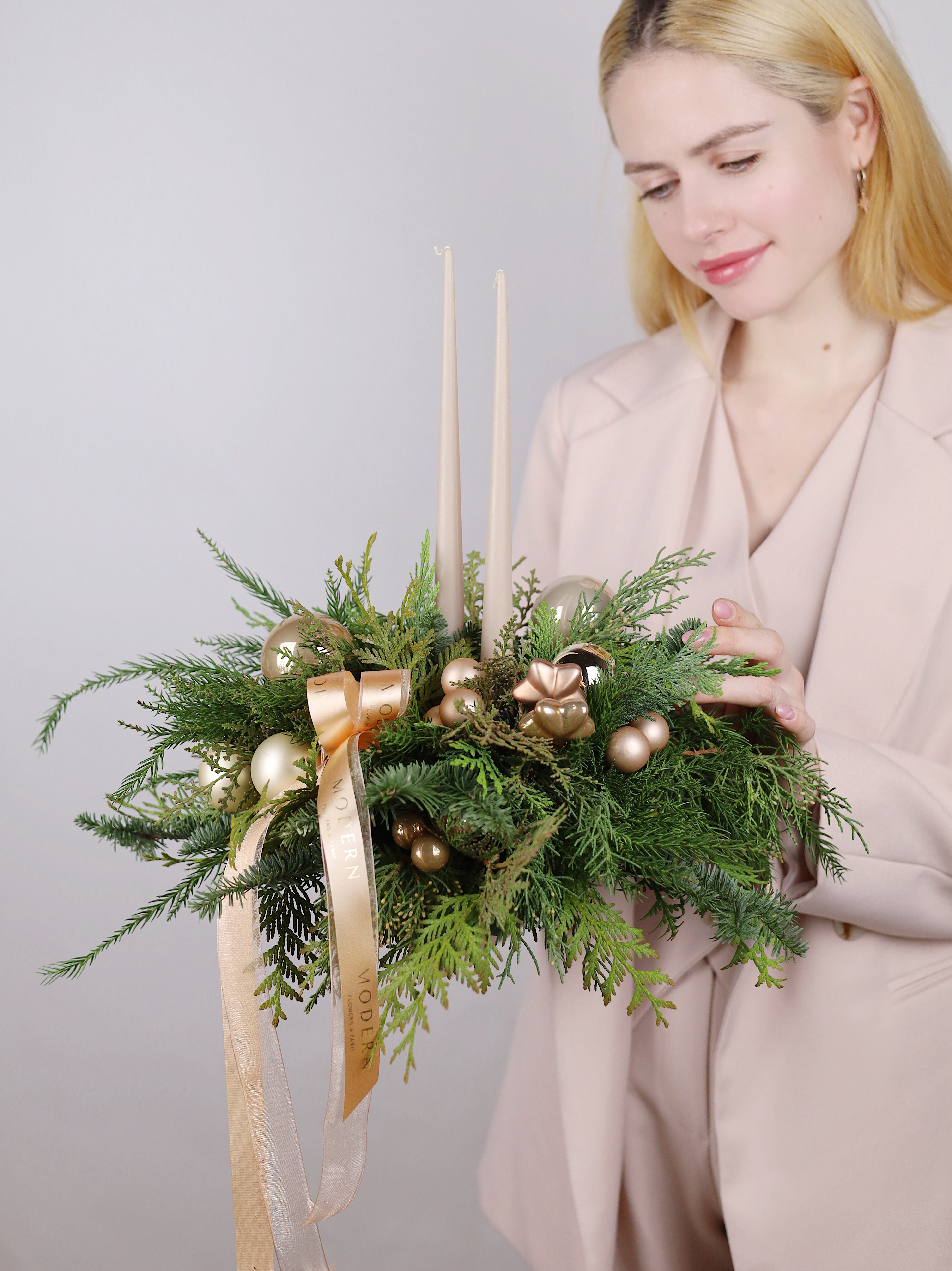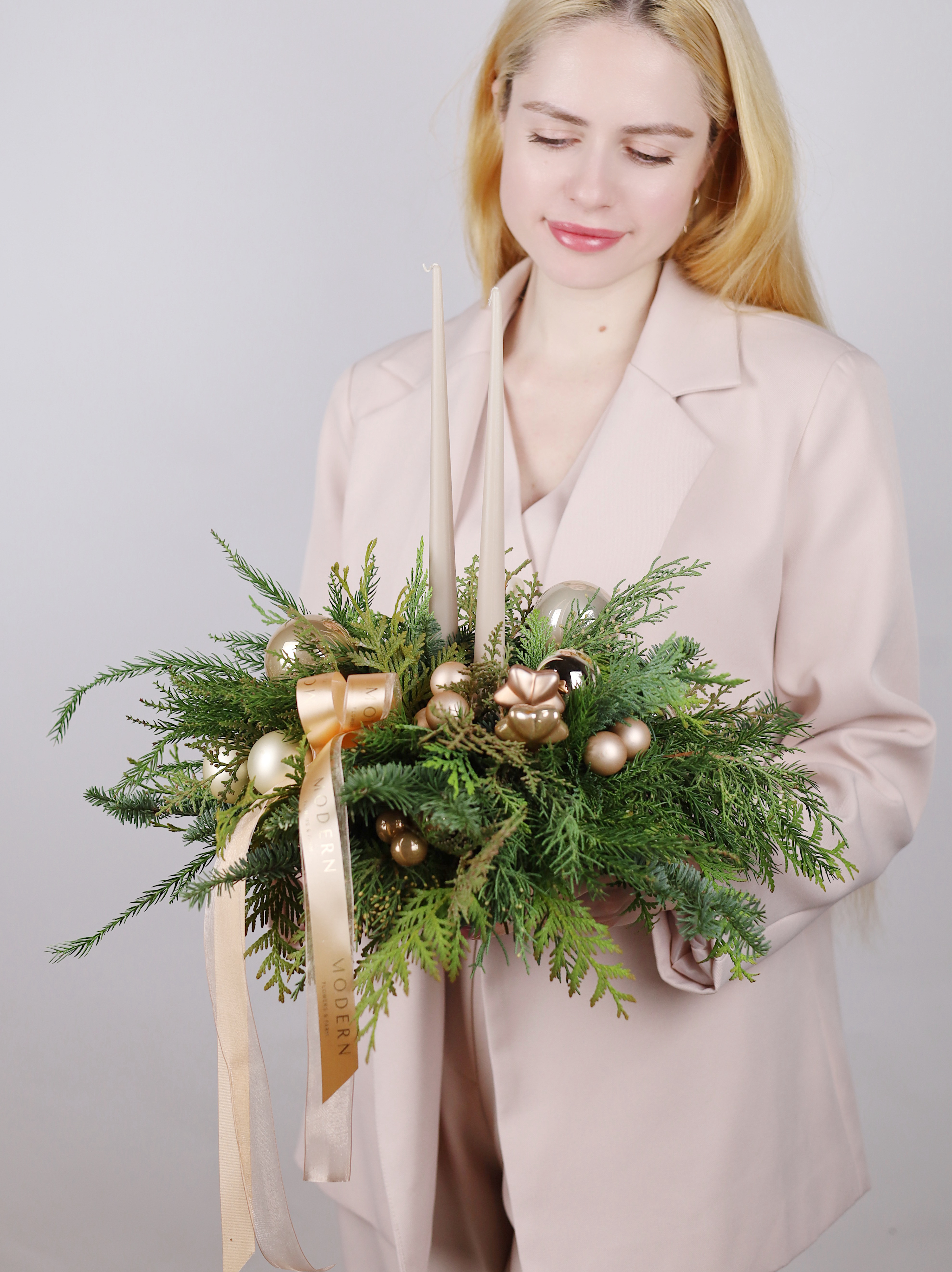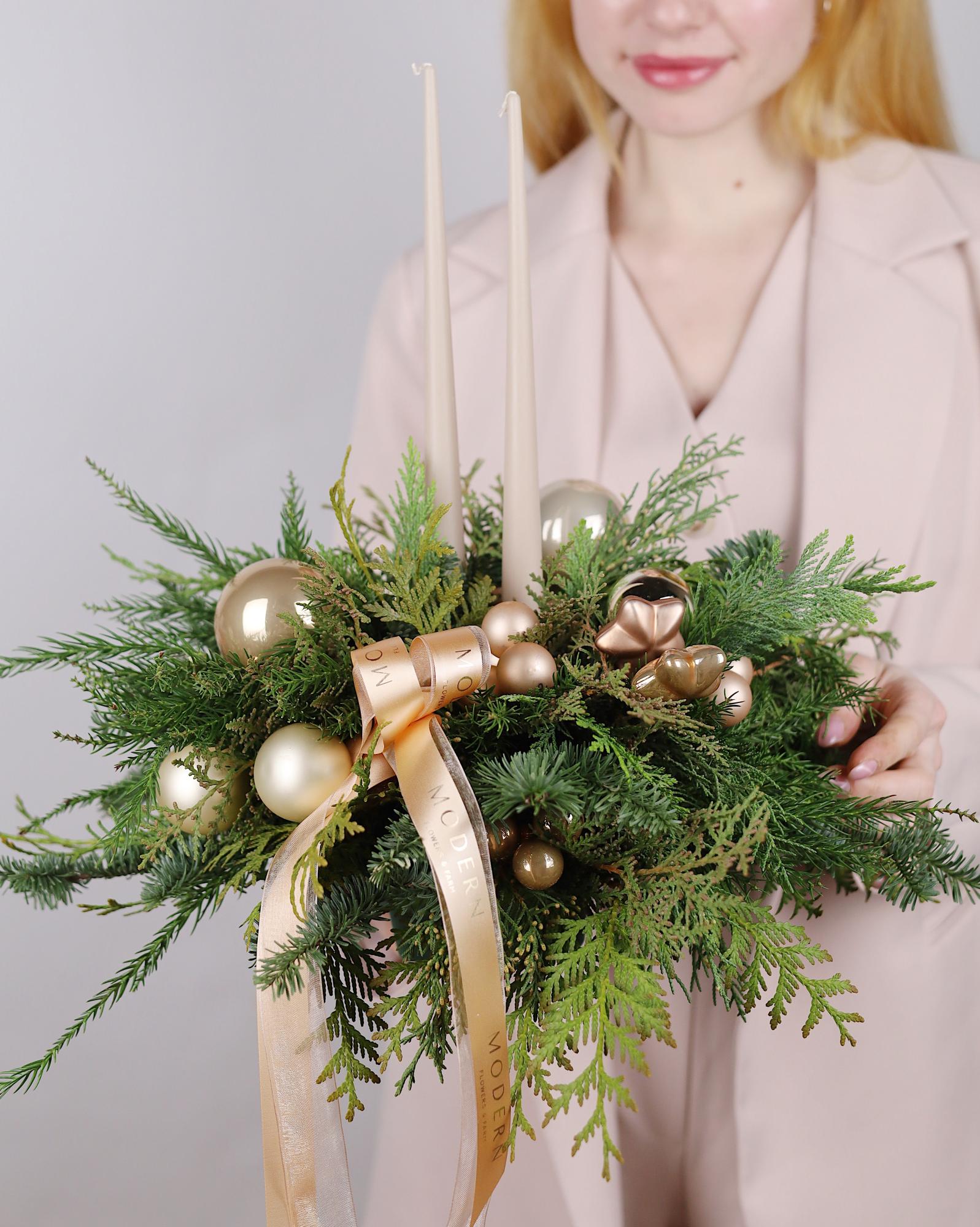 *Все наши работы создаются вручную из натуральной хвои, ветки которой могут отличаться друг от друга по размеру и объему. Композиция или новогодний венок могут незначительно отличаться от фото, но при этом они будут выполнены в такой же стилистике и цветовой гамме.