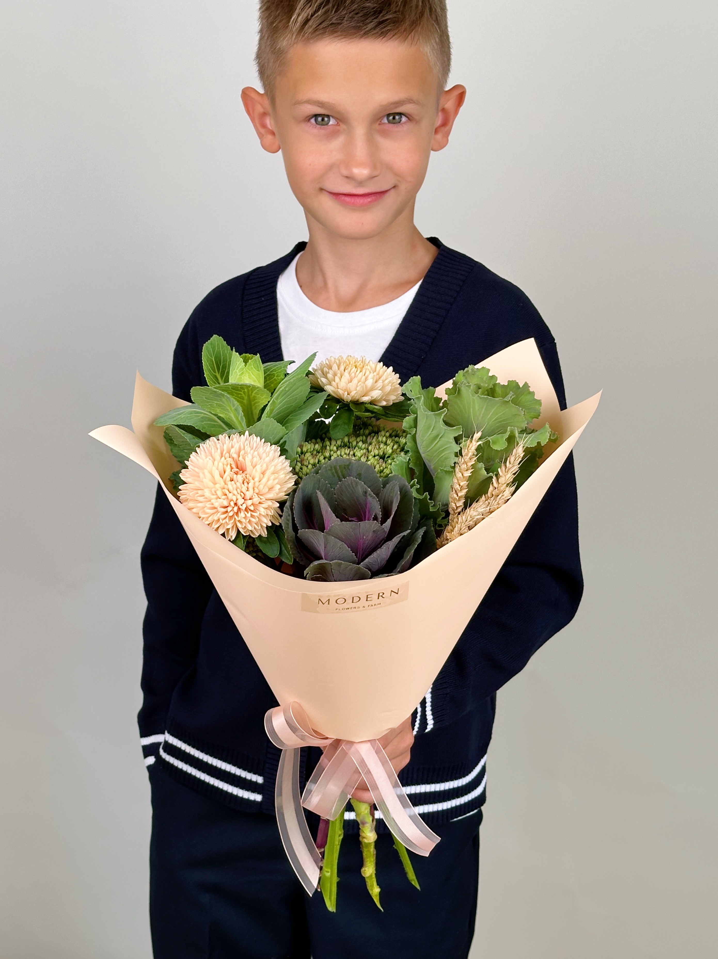 ОСЕННИЙ БУКЕТ С АСТРОЙ И БРАССИКОЙ