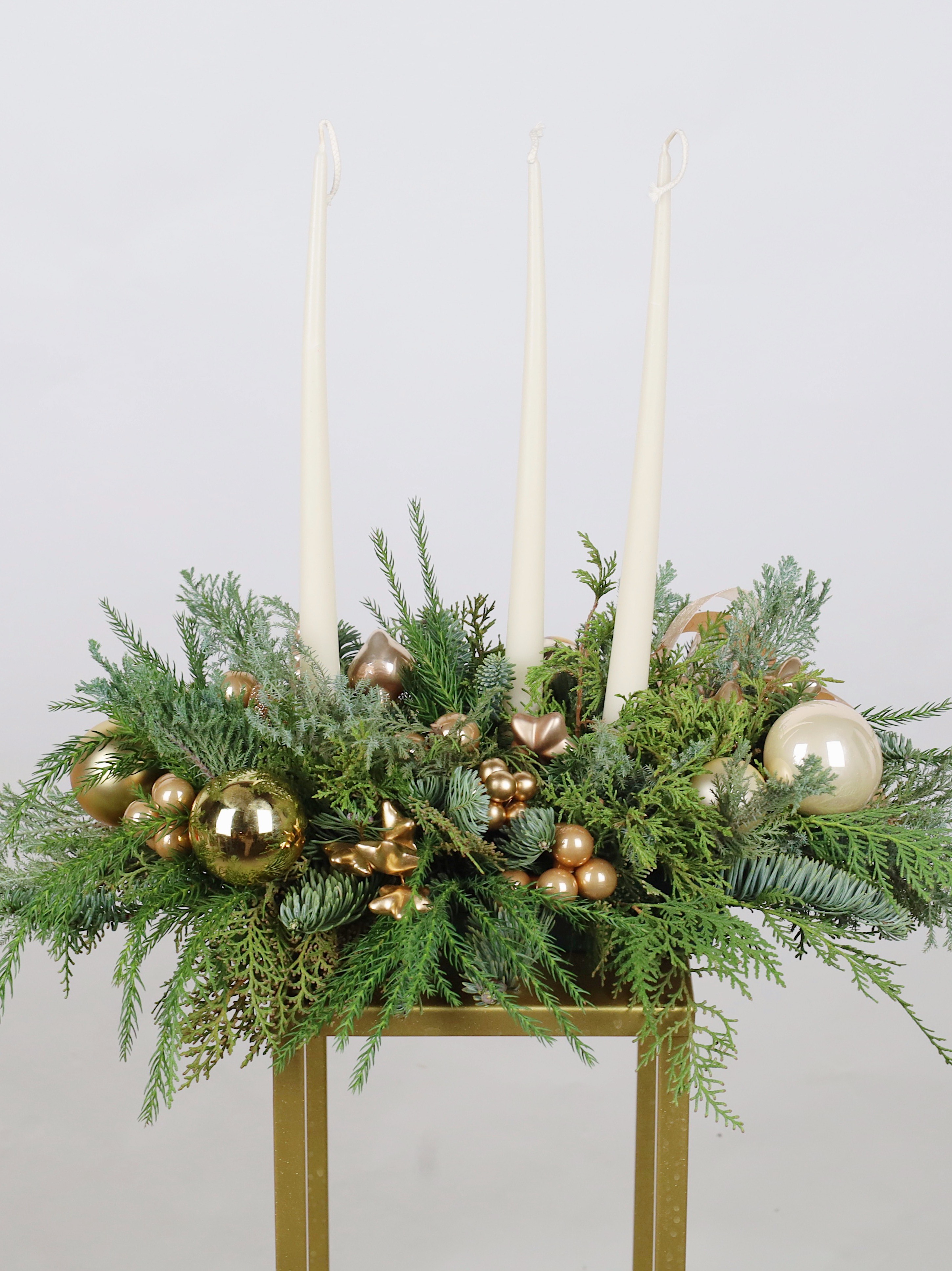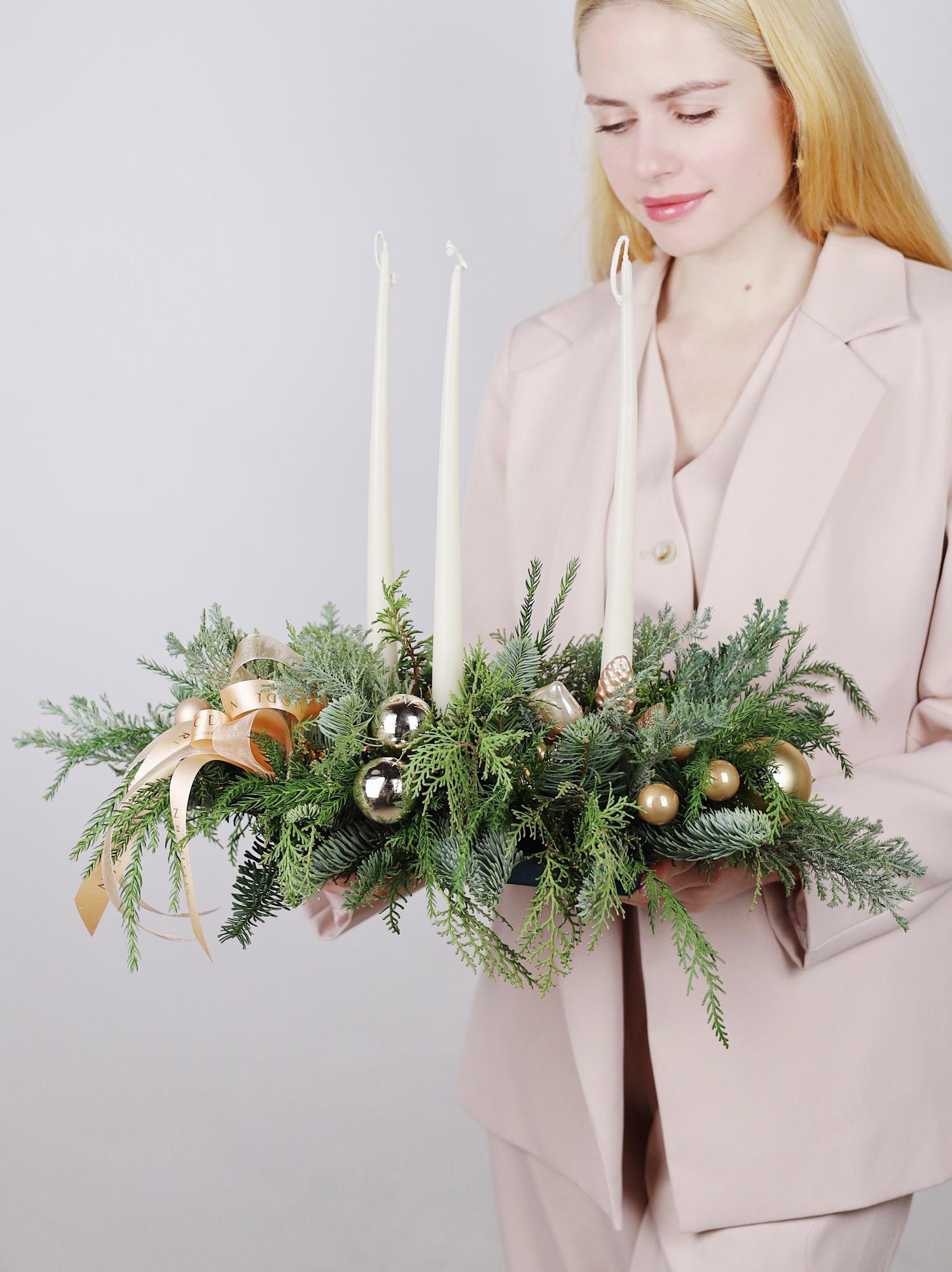 *Все наши работы создаются вручную из натуральной хвои, ветки которой могут отличаться друг от друга по размеру и объему. Композиция или новогодний венок могут незначительно отличаться от фото, но при этом они будут выполнены в такой же стилистике и цветовой гамме.